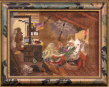 Fertig gerahmtes handgesticktes Bild (Spitzweg), mit petit point Gobelinstichen, Stramin 100% Baumwolle, Stickwolle 100% Wolle, Holzrahmen, Rahmen-Außenmaß 14cm x 17cm G0403: 19,90 € (inkl. MwSt. zzgl. Versandkosten) |