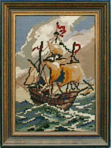 handgesticktes Bild, mit gezählten Kreuzstichen, Aida-Stoff 100% Baumwolle, Stickgarn 100% Baumwolle, Holzrahmen, Rahmen-Außenmaß 19,5cm x 25,5cm G0414: 49,90 € (inkl. MwSt. zzgl. Versandkosten) |
