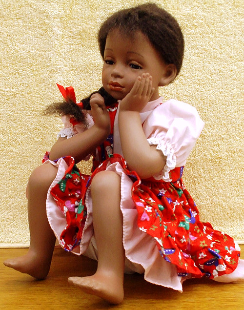 Die sitzende Puppe hat eine Höhe von 29 cm.