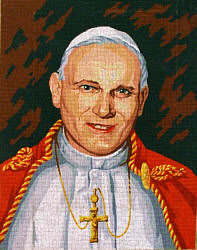 Gobelin-Stickpackung-Angebot, Papst Jean Paul II gemalter Stramin (100% Baumwolle) mit Stickwolle (100% Wolle), Bildgröße 37 x 47 cm Nr:H0756 Superpreis 39,95 € (inkl. MwSt. zzgl. Versandkosten) |