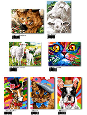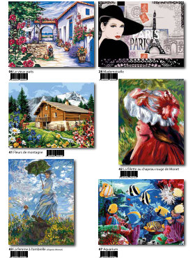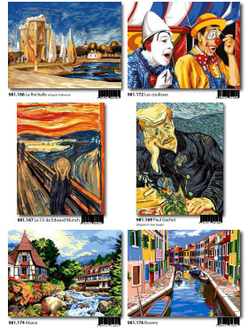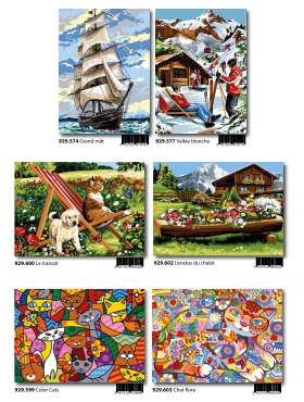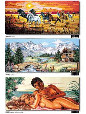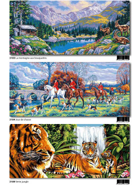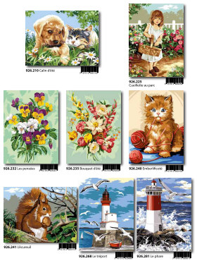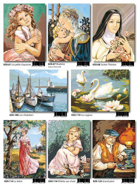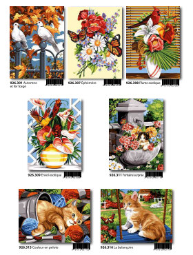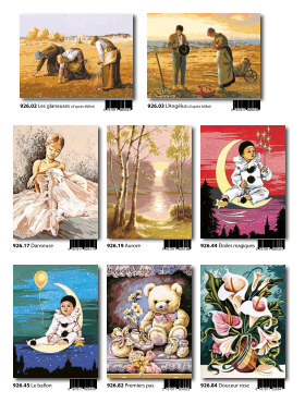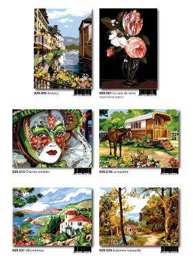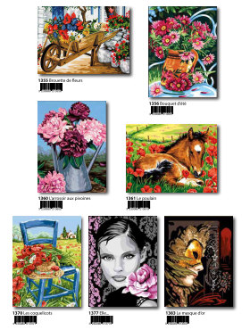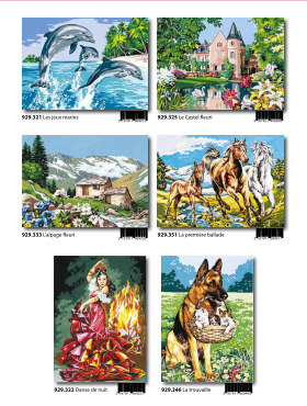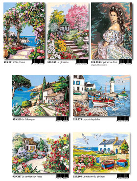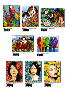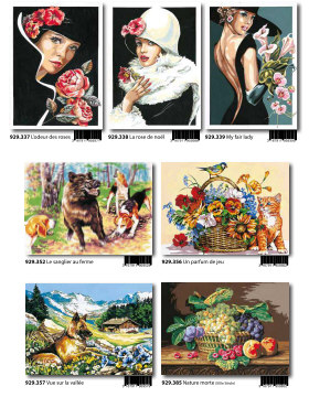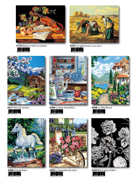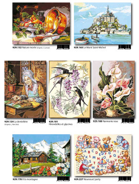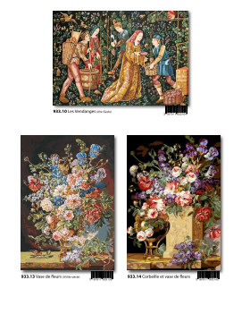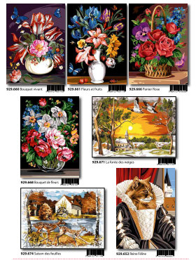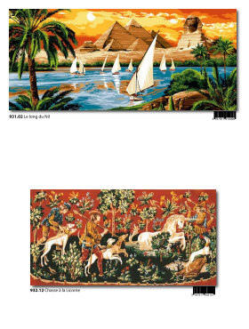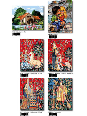 Gobelin-Straminen und Gobelin-Stickpackungen. Diese Artikel können wir anbieten - bitte fragen Sie Einzelheiten wie Preise und Größe bei uns an indem Sie die Seitenzahl der Katalogseite und die Position des Bildes angeben. Die Lieferzeit für diese Artikel beträgt 4 Wochen, da diese vom Ausland bezogen werden. |