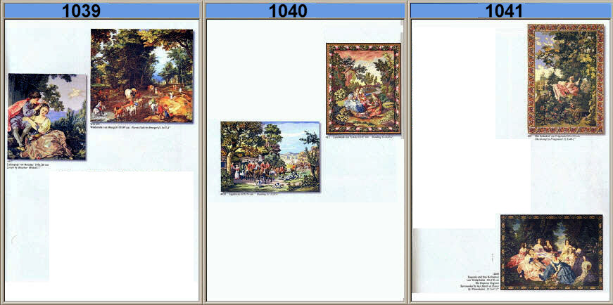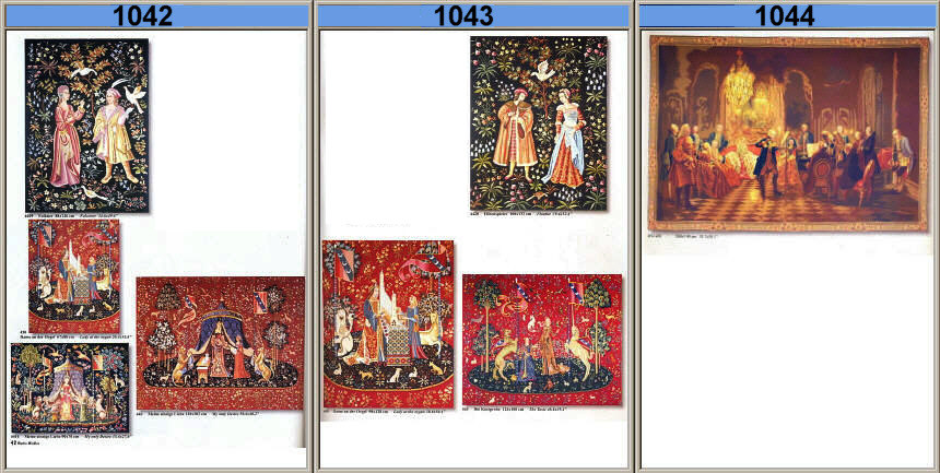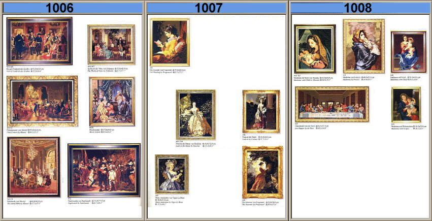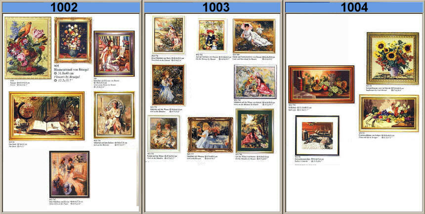 Gobelin-Stickpackungen. Diese Artikel können wir anbieten - bitte fragen Sie Einzelheiten wie Preise und Größe bei uns an indem Sie die Seitenzahl der Katalogseite und die Position des Bildes angeben. Die Lieferzeit für diese Artikel beträgt 10 Werktage. |