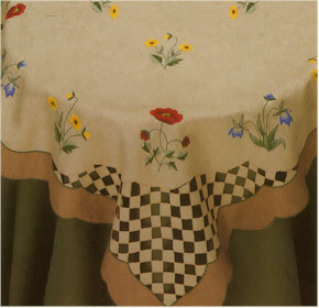 Mitteldecke mit Sommerblumen Der Stoff ist 100 % Polyester, pflegeleicht und waschbar auf 40 Grad. Die Durchbrüche sind an den Rändern verschweißt, was das Ausfransen des Stoffes verhindert. Größe ca. 85 x 85 cm. Nr:T081 21,40 € (inkl. MwSt. zzgl. Versandkosten) |