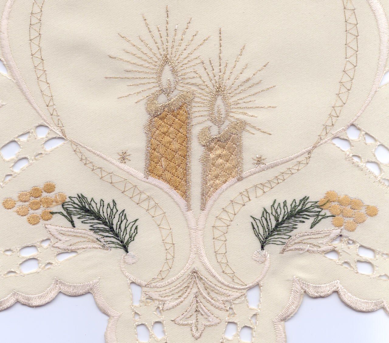 Satingewebe weiß Durchmesser ca 28 cm hochwertige Maschinenstickerei (siehe Detail) 40 Grad-Wäsche T3003 7,50 € (inkl. MwSt. zzgl. Versandkosten) |