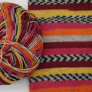 | Sockenwolle 4-fach Color: 3,95 € pro 50gr. (79,00 EURO pro 1kg.) (inkl. MwSt. zzgl. Versandkosten) 100gr. reicht zum Stricken für 1 Paar Socken bis Größe 46 (die fotografierten Strickteile zeigen den Farbverlauf und werden NICHT fertig gestrickt angeboten). Sockenwolle 4-fach Color: 75 % Wolle, 25 % Polyamid, 210 m auf 50 gr., Nadelstärke 2,5 waschmaschinenfest bis 40 Grad, angenehmer weicher Griff. Anfrage/Bestellen |