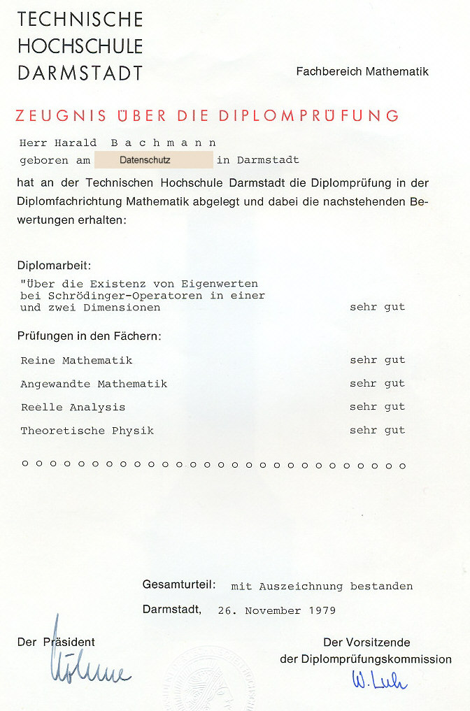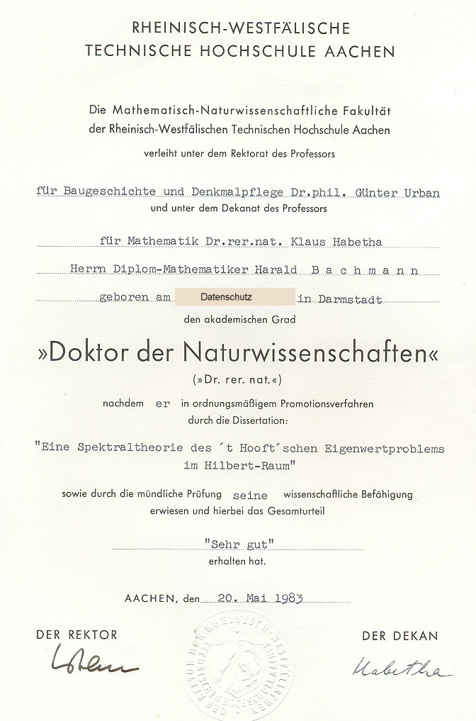 Wenn Kunden im Laden den Namen Dr. Harald Bachmann hören fragen sie immer wieder einmal danach was ich denn studiert habe. Auch im Internet scheint diese Frage ab und zu aufgeworfen zu werden. Deshalb finden Sie hier die Antwort: studiert habe ich Mathematik. Und wie immer im Leben führt die Antwort auf eine Frage sofort wieder zu neuen Fragen. Der Mensch möchte das Unbekannte ergründen. Schließlich ist das Leben voller Fragen. Welche davon stellt man? Ich denke: Das Wesen eines Menschen erkennt man an seinen Fragen! |