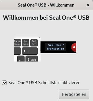 Man macht ein Häkchen bei Schnellstart und anschließend klickt man auf Fertigstellen Auf dem Display von seal-one wird angezeigt |