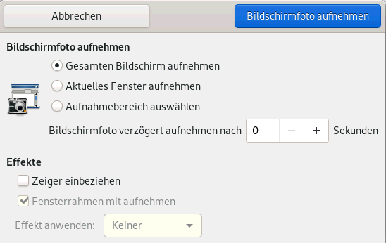 Bei Debian 12 funktioniert dies nicht genauso. Es gibt auch andere Programme die Bildschirmkopien machen und die auch gleich eine Bearbeitung des Fotos erlauben. Eine Möglichkeit ist das Programm flameshot das man über synaptic installieren kann. Mit flameshot kann man durch Umbelegung der Tastenkombination die Bildschirmkopie von Debian 11 wiederbekommen. flameshot wird über das Terminal gesteuert. So kann man ein Konfigurationsmenu aufrufen mit |