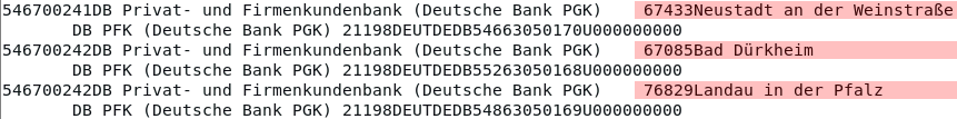 DEUTDEDB546 DEUTDEDB552 DEUTDEDB548 Filtern lediglich nach der BLZ 54670024 zeigt daß es verschiedene Orte gibt |