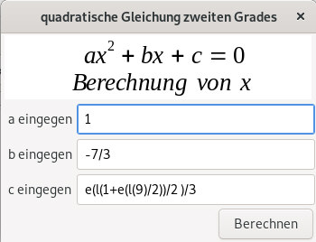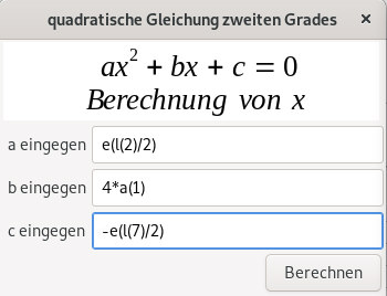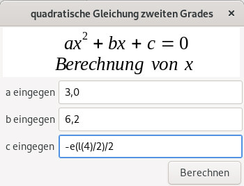 vorherigen Seiten über Programmfenster werden hier weitergeführt. Das Lösen quadratischer Gleichungen gehört zu den Grundlagen der Mathematik. Begriffe wie pq-Formel abc-Formel Mitternachtsformel kennt wahrscheinlich jeder. Ein Beispiel |