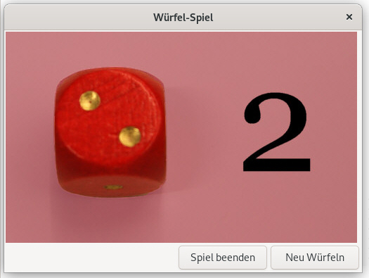 vorherigen Seiten über Programmfenster werden hier weitergeführt. Im Internet habe ich die Gedanken zu einem Würfelspiel gefunden. Hier nochmals die Hintergrundinformationen: Man kann in bash eine zufällige Zahl erzeugen durch |