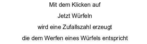 Nach dem Drücken auf die Schaltfläche Jetzt Würfeln beginnt das Spiel. Vielleicht macht dieses Spiel auch Kindern Spass beim Lernen der Zeichen für die ersten sechs Ziffern. |