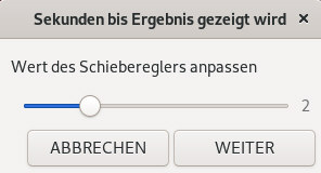 | Nach dem Aufruf des script kann man festlegen nach wieviel Sekunden die Lösung erscheint. Möglich sind 1 Sekunde bis 5 Sekunden. Es sind 2 Sekunden voreingestellt |