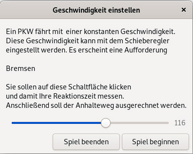 Lernspiel Bremsweg (funktioniert unter Xorg aber nicht