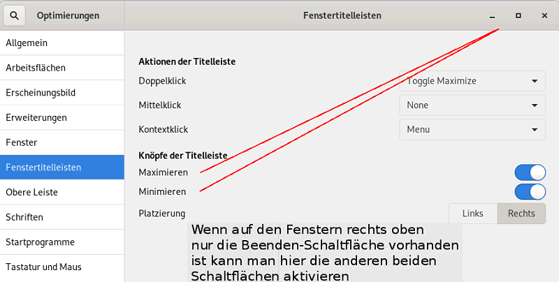 | Ich persönlich brauche diese Schaltflächen aber nicht und ich habe mich von der Windows-Konditionierung gelöst. |