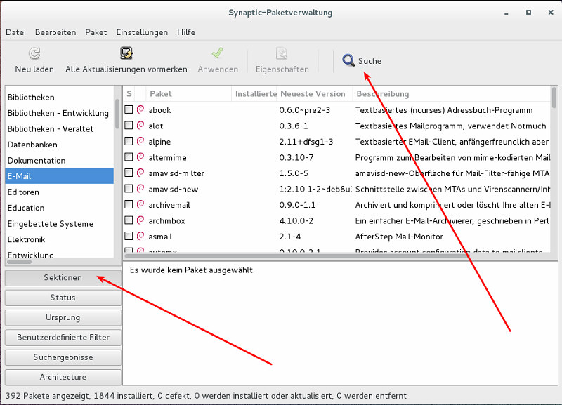 Synaptic nur Pakete aus dem main-Bereich so befindet man sich auf der