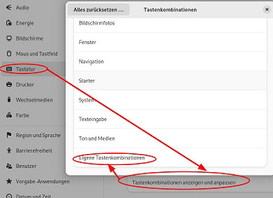 Eingabefelder entsprechend aus, klickt auf Tastenkombination festlegen ... und drückt anschließend die ausgesuchte Tastenkombination, hier Alt+P. Dann wählt man Hinzufügen. Wenn aber die Terminal-Eingaben tief in das System eingreifen kann man das als normaler Benutzer nicht mehr tun - so sind auch die Systemdateien im Ordner "Rechner" nicht zugänglich. Dies ist wesentlich für die Sicherheit von Linux. Aber derjenige der das Root-Passwort weiß (Administrator) hat auch Zugang zu den gesicherten Bereichen. Dazu benutzt man bei Terminal-Eingaben das vorangestellte "sudo" (man will sich mit dem Root-Passwort anmelden). Ist man mit dem Root-Passwort angemeldet hat man totalen Zugriff auf den Rechner und könnte diesen auch zugrunderichten. Man sollte sich gut informieren und klar darüber sein was man tut. Trotzdem sollte man sich nicht fürchten und es gibt zahlreiche notwendige Eingaben, z.B. Software-Installation und System-Bereinigung. Nun hat die Verwendung von "sudo" die Auswirkung daß das System 15 Minuten lang total zugänglich ist. Bei Debian verwendet man "su" (oder auch "su -") und nach getaner Arbeit beendet man die Root-Anmeldung mit "exit" - dann ist das System wieder gesichert. Also "sudo" weglassen und im Terminal su (oder auch "su -") eintippen und die Eingabetaste drücken. Es erscheint die Abfrage nach dem Root-Passwort. Dieses tippt man ein - es gibt keine sichtbaren Reaktionen im Terminal, aber nach Drücken der Eingabetaste: |