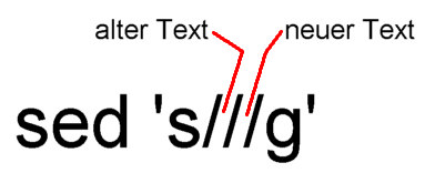 123AbC321 Definiert man jetzt die Variable gG=/Bla/Web/seiten/page001.htm und man möchte / durch \ ersetzen, so muß man beide Zeichen maskieren (mit dem Funktionszeichen \ in ein normales Textzeichen verwandeln), also \/ durch \\ ersetzen, was zu folgendem Ausdruck führt echo $gG | sed 's/\//\\/g' \Bla\Web\seiten\page001.htm Der Ausdruck bei sed ist sehr unübersichtlich. Man kann die Trennzeichen bei sed anders wählen um eine bessere Lesbarkeit zu erreichen echo $gG | sed 's:\/:\\:g' echo $gG | sed 's|\/|\\|g' echo $gG | sed 's#\/#\\#g' führt zum gleichen Ergebnis Die Tatsache daß bei den End-Tag-Elementen der html-Notation auch / als Zeichen auftritt (und es auch noch in den Pfadangaben vorkommt) legt es dringend nahe das Trennzeichen bei sed zu ändern - es wurde | gewählt, denn : kann im body-Text vorkommen und # erscheint bei Farb-Codes. Auch der Punkt hat eine Sonderbedeutung. Man muß ihn entweder maskieren oder als Zeichenklasse definieren sed 's|\.||g' sed 's|[.]||g' Nach dem Buchstaben A einen Zeilenumbruch machen |