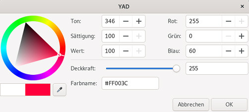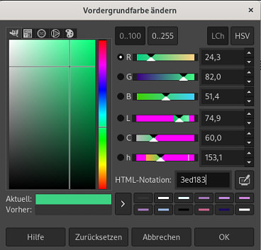 Die möglichen Farbnummern in HTML-Notation (Hex-Code) kann man erfahren über gimp |
