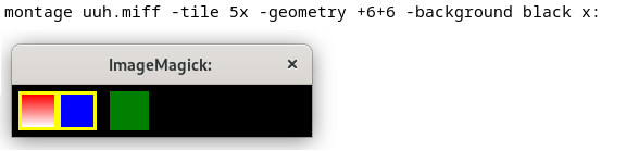 | montage uuh.miff -tile 5x -geometry +6+6 -background black x: |