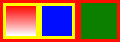 | convert -size 30x30 -bordercolor yellow gradient:red xc:blue -border 3 +append -size 36x36 -bordercolor red xc:green -border 3 +append m11.png |