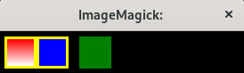 | convert -size 30x30 -bordercolor yellow gradient:red xc:blue -border 3 +append -size 36x36 -bordercolor red xc:green uuh.miff |