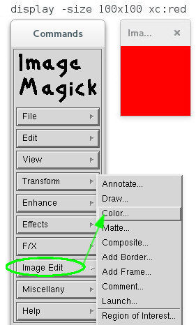 hat man eine gute Übersicht. Die möglichen Namen für Farben kann man auch mittels display ermitteln. Dazu ruft man mit display ein Bild auf und klickt auf das geöffnete Bild. Es erscheint ein Zusatzmenu bei dem man sich zu einem Farb-Browser durchklicken kann |