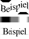 Der Buchstabe s liegt im Bereich der Maskenfarbe gray50 und wird daher nicht verschoben. Es sind deutlich die schwarzen virtuellen pixel zu sehen die bei der Verschiebung entstehen. Deshalb ist es von Vorteil die virtuellen pixel anders darzustellen. Eine gute Möglichkeit ist -virtual-pixel black zu ersetzen durch -virtual-pixel mirror Nun wird eine Verschiebungs-Maske gebaut. Anschließend wird diese verwischt um harte Kanten zu beseitigen |