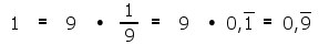 Mathematik a = b Zitat aus C. G. Jung "Erinnerungen, Träume, Gedanken":"Am meisten empörte mich der Grundsatz: wenn a=b und b=c dann ist a=c, wo es doch per definitionem feststand, daß a etwas anderes bezeichnete als b und daher als etwas anderes nicht mit b gleichzusetzen war, geschweige denn mit c. Wenn es sich um eine Gleichsetzung handelt, dann heißt sie a=a, b=b usw., während a=b mir direkt als Lüge oder Betrug vorkam." In der Mathematik sind a, b, c, usw. Abkürzungen für Sinneinheiten, etwa a=1Stunde b=60Minuten c=3600Sekunden a steht als Abkürzung für die Zeitdauer von einer Stunde, nicht als Gleichheit der Zeichen an sich. Es gilt 1Stunde=60Minuten abgekürzt a=b 60Minuten=3600Sekunden abgekürzt b=c Dann kann man folgern daß a=c ist, also 1Stunde=3600Sekunden. Anderes Beispiel bei dem eine Division ausgeführt wird 1:9=0,1111111111... Nun ist eine Zahl durch ... nicht genau genug beschrieben, denn es könnte sein daß nach der 2400-ten Stelle auf einmal eine 5 erscheint. Man weiß aber daß dies nicht der Fall sein wird und schreibt zum genaueren Erfassen des Sachverhaltes einen Strich über die 1, was bedeuted daß diese 1 sich immer wiederholt 1:9 = 0,1 Die rechte und die linke Seite haben deutlich abweichende Zeichenfolgen, links gibt es ein Geteilt-Zeichen und 9 während es rechts ein Komma und eine 1 gibt, die als periodische Wiederholung gekennzeichnet ist. Diese unterschiedlichen Ausdrücke können abstrakt mit verschiedenen Buchstaben bezeichnet werden a= 1:9 b= 0,1 und man kann rechnen |
