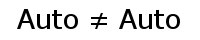 | Nun gibt es neue Autos, schmutzige Autos, Autos mit einer Beule im Blech, jede Menge Fabrikate und wenn man Vergleiche anstellt bis hin zur atomaren Ebene, so kann man die Meinung vertreten daß es nirgendwo zwei genau gleiche Autos gibt. Müßte man somit nicht schreiben: |