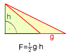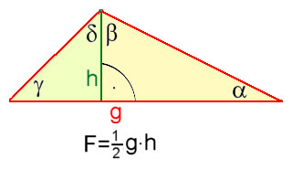 man das grüne Dreieck. Das Ergebnis ist für das rote Dreieck wieder: Die Summe aller drei Winkel beträgt 180° Die Fläche beträgt die Hälfte der Fläche von Grundseite mal Höhe. |