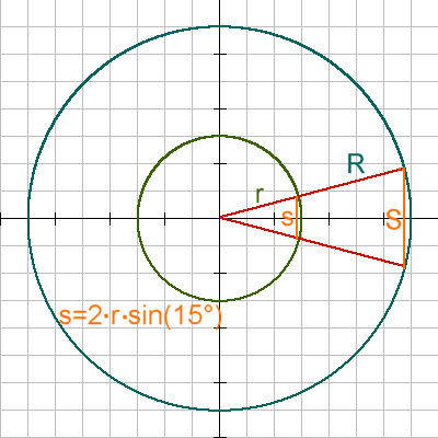 Man teile den kleinen Kreis gedanklich in 12 aneinanderliegende Kreisausschnitte (also 360°/12). Im