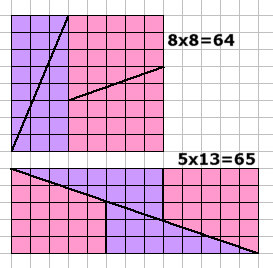 Kreisausschnitten erhält man die angenäherte Fläche![]() Erhöht man die Anzahl der aneinanderliegenden Kreisausschnitte, z.B. 1200 so erhält man ![]() Mit weiterer Erhöhung der Anzahl der aneinanderliegenden Kreisausschnitte über alle Vorstellungen hinaus ergibt sich für einen Kreis mit Radius r ![]() Es gibt vielleicht einen Einwand gegen das Verwenden des Taschenrechners weil dieser bei der Umwandlung von Gradmaß zu Bogenmaß die Zahl ![]() und ![]() Folglich ![]() Man kann diesen sinus-Wert durch Wurzelausdrücke berechnen. Und wenn man ständige Halbierungen durchführt so kann man beliebig kleine Winkel durch Wurzelausdrücke berechnen, z.B. ![]() oder in der Folge die Werte 3,75 1,875 0,9375 0,46875 0,234375 und bei U(r,1536) bekommt man mit der Berechnung von 1536xsin(0,1171875°) alleine über Wurzelausdrücke die oben angegebene Genauigkeit von Nun muß man natürlich bei geometrischen Überlegungen vorsichtig sein. Ein bekanntes Beispiel dafür ist der "geometrische Beweis" von 64=65 |