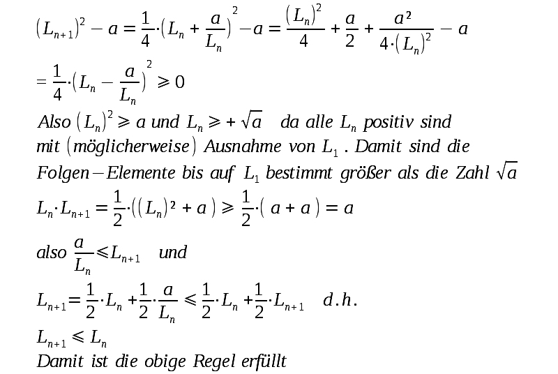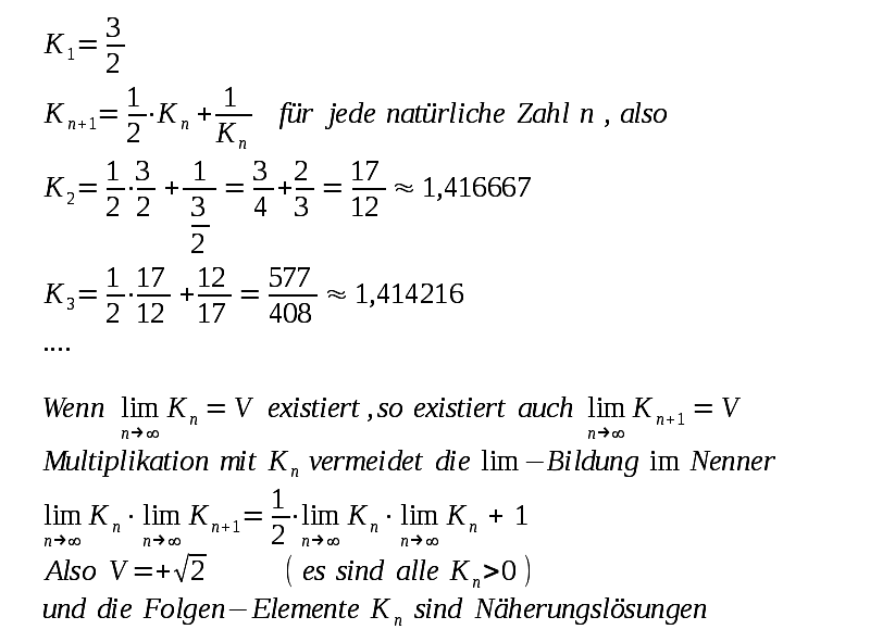 | Noch zwei weitere Folgen ( Ln ist nach Wikipedia als babylonisches Wurzelziehen schon ca. 1750 v.Chr. bekannt): |