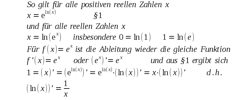 nennt und man schreibt ln(s) oder ln s. Wählt man s=er so wird r=ln s |