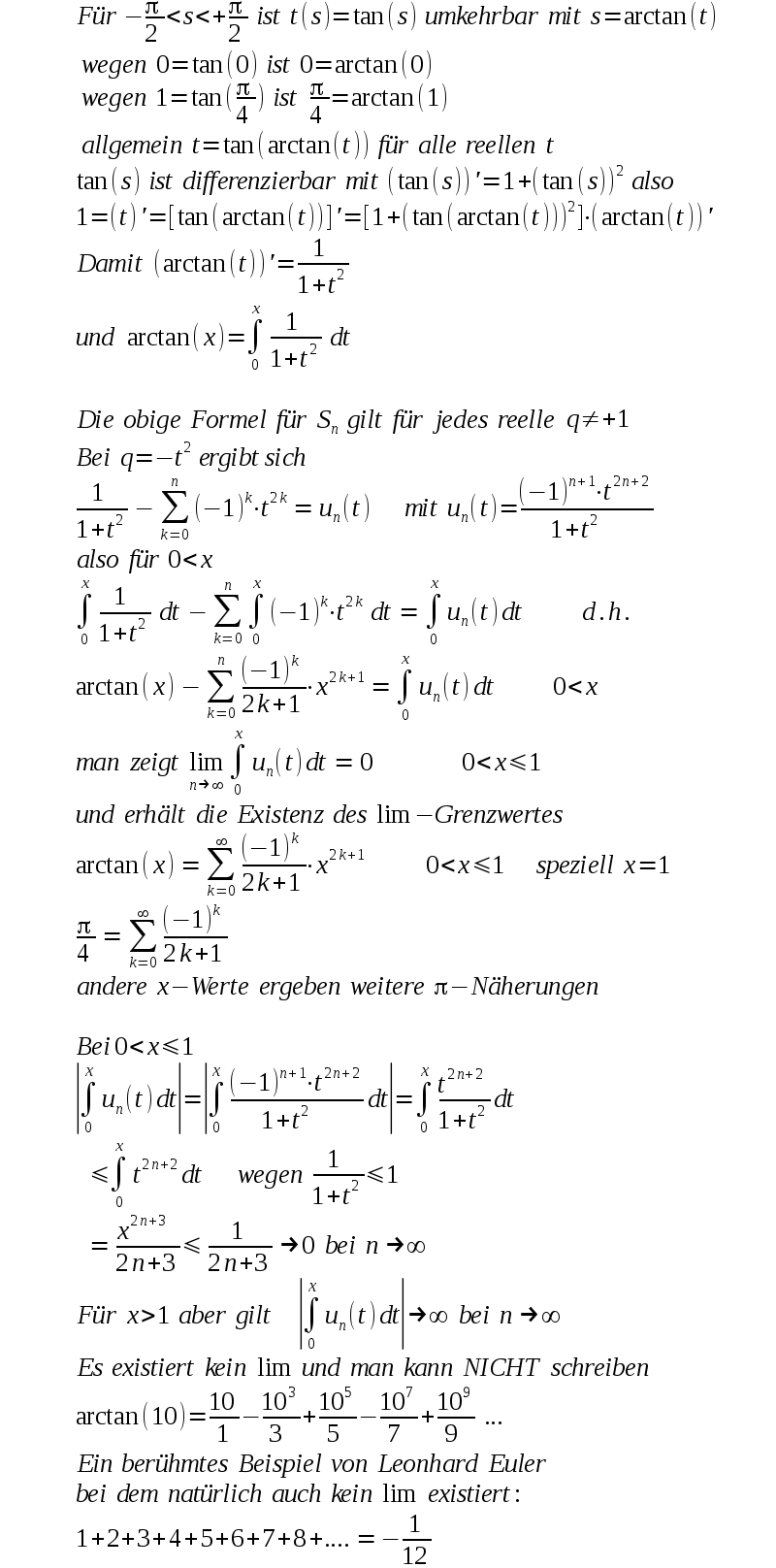 | Zum Bestimmen des Grenzwertes für obige Folge Pn wird etwas über die Umkehrfunktion von tan angemerkt: |