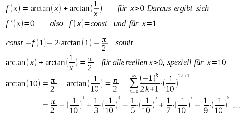 Möglichkeit arctan(10) korrekt zu berechnen, also anzunähern. Dazu betrachte man die Funktion |