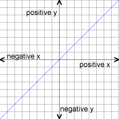 Funktionen Man kann auf einem Blatt Papier einen Lageplan zeichnen. Mathematisch gesehen kann man dies als ein zweidimensionales Koordinatensystem betrachten mit einem Nullpunkt im Mittelpunkt (aktueller Standort auf dem Lageplan) und x-Werten in waagrechter Anordnung und y-Werten in senkrechter Anordnung.x-Werte: positive reelle Zahlen nach rechts (nach Osten) angeordnet, x-Werte: negative reelle Zahlen nach links (nach Westen) angeordnet, y-Werte: positive reelle Zahlen nach oben (nach Norden) angeordnet, y-Werte: negative reelle Zahlen nach unten (nach Süden) angeordnet, Jeden Punkt im Koordinatensystem kann man in der Form (x,y) eindeutig beschreiben. Stehen die x-Werte mit den y-Werten in einer Beziehung so kann man dies oft als Kurve im Koordinatensystem einzeichnen. Bsp.: Kurve=Menge aller Punkte (x,y) für die gilt y=x |