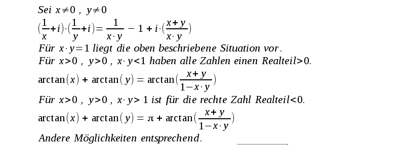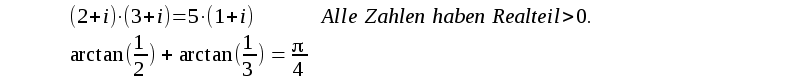 | Bei der Multiplikation zweier komplexer Zahlen addieren sich die Winkel. Und mit dieser Überlegung lassen sich auf einfache Art erstaunliche Ergebnisse erzielen: |