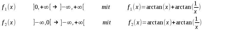 | Der erste Fehler ist daß der Definitionsbereich der Funktion nicht konkret angegeben wurde. Da man nicht durch 0 teilen darf gibt es kein f(0). Eine Lösung besteht darin daß man passende Definitionsbereiche wählt und f in zwei Funktionen zerlegt: |