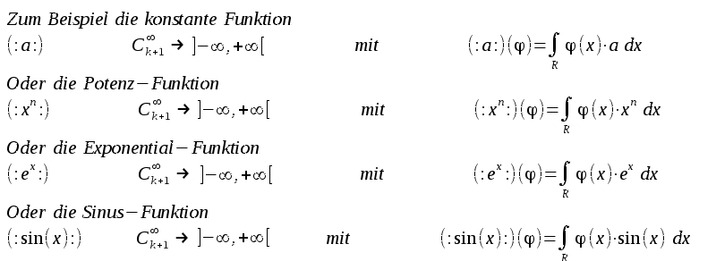 etwa als Raum der Testfunktionen Wir gehen hier einmal davon aus daß für T(- Insbesondere ergibt sich daß jede Distribution beliebig oft differenzierbar ist. Ein Beispiel |