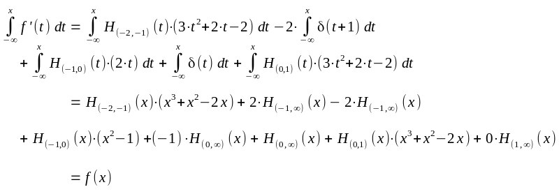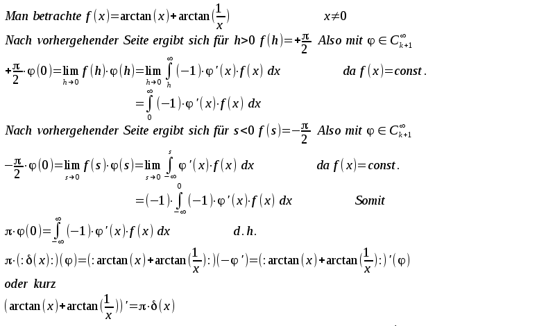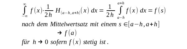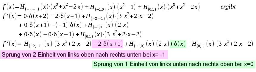 | Damit läßt sich die Ableitung vieler (auch unstetiger) Funktionen im Sinne der Distributionen aufschreiben |