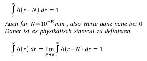 | Diese Schreibweise wird auch für die Delta-Distribution verwendet obwohl hier dem Integral keine exakte Bedeutung zukommt, denn die Delta-Distribution ist nicht integrierbar. |