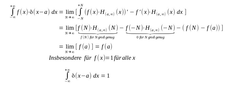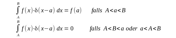 | Analog den Regeln für Integrale werden dann formale Regeln für die Delta-Distribution entwickelt obwohl hier doch keine Integrierbarkeit vorliegt. |